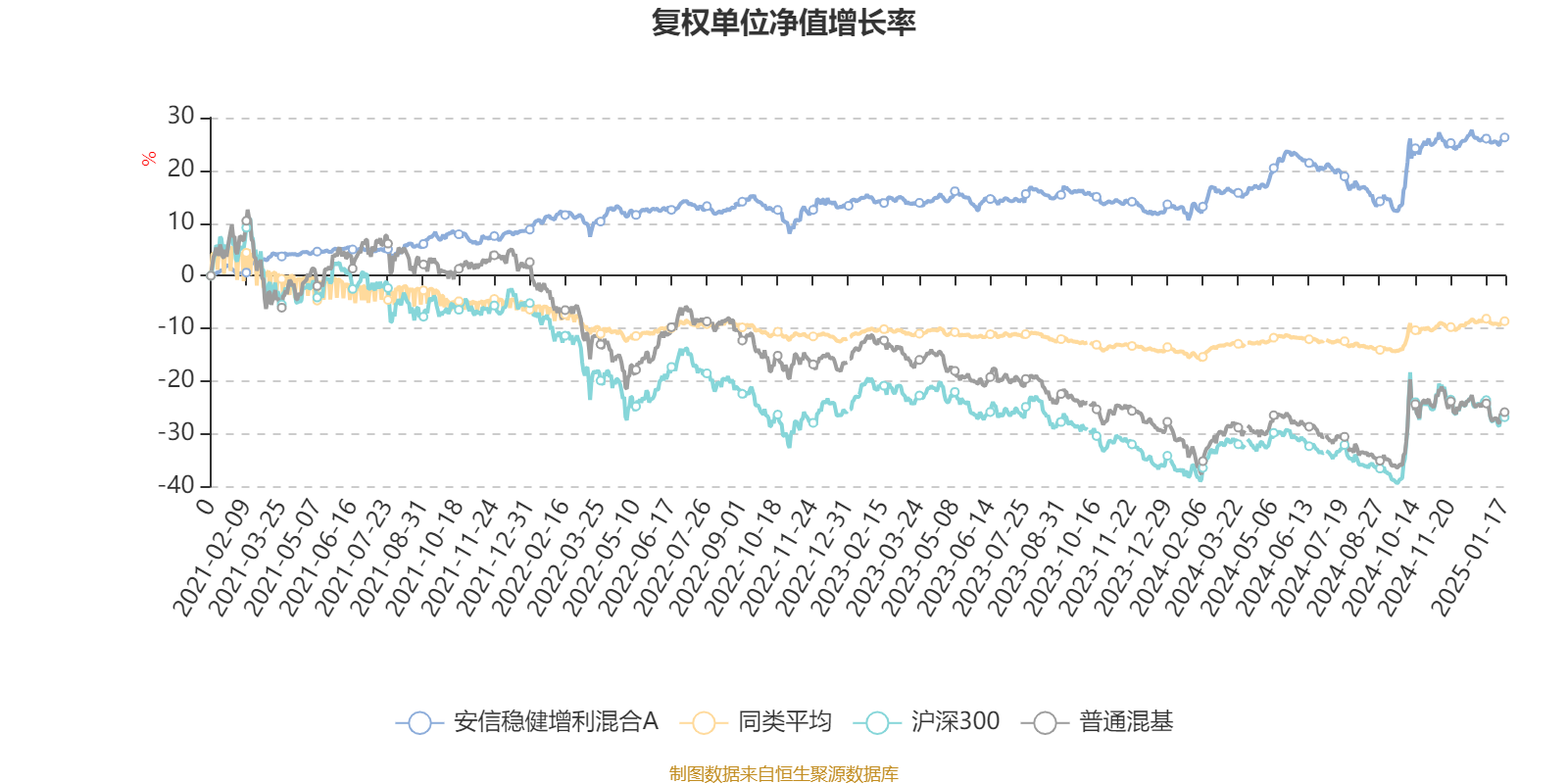 截至1月17日,安信稳健增利混合A近三个月复权单位净值增长率为2.59%,位于同类可比基金143/670;近半年复权单位净值增长率为5.87%,位于同类可比基金129/670;近一年复权单位净值增长率为12.88%,位于同类可比基金36/664;近三年复权单位净值增长率为14.70%,位于同类可比基金15/521。